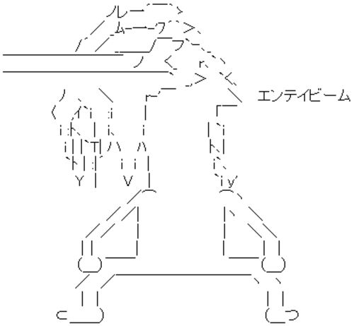 https://hobby8.5ch.net/test/read.cgi/hobby/1112330061/ 探していたエンテイビームのAAが上記スレから拾えたので貼っておきます。 ついでにMS Pゴシックで画像にしました。